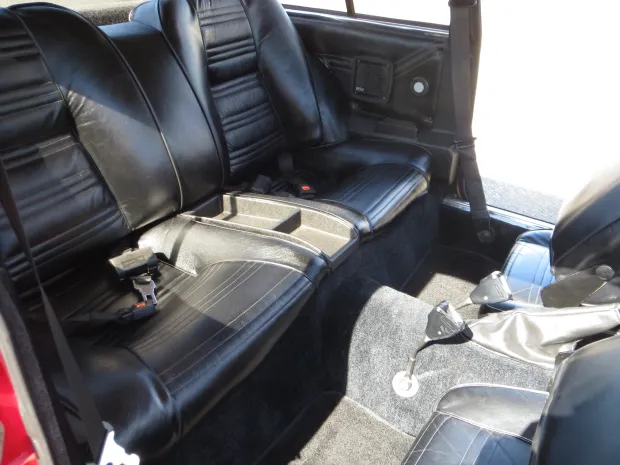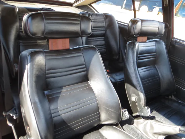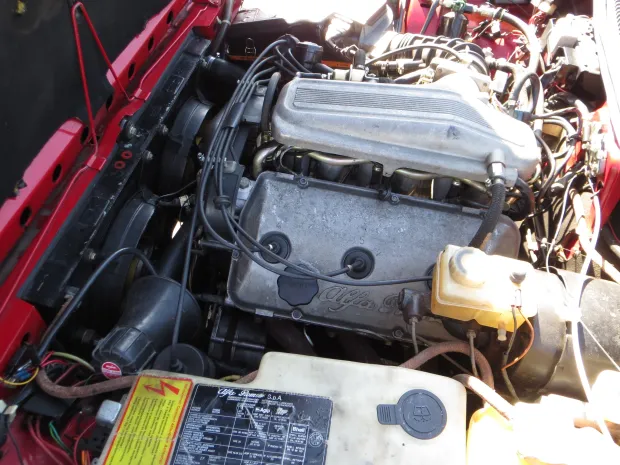 Interior: Black vinyl and cloth seats with a driver-focused cockpit, including unique Alfa instrumentation and wood accents.